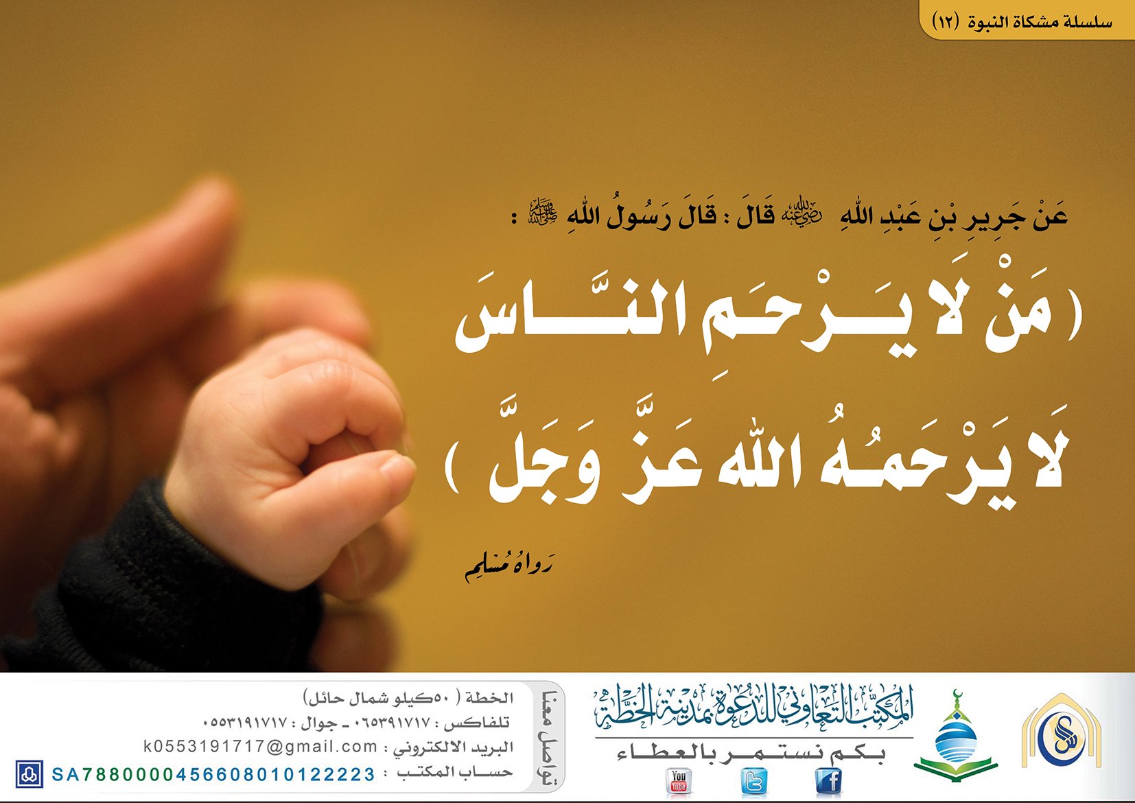 مكتب الدعوة بالخطة V Twitter عن جرير بن عبد الله رضي الله عنه قال قال رسول الله صلى الله عليه وسلم من لا يرحم الناس لا يرحمه الله